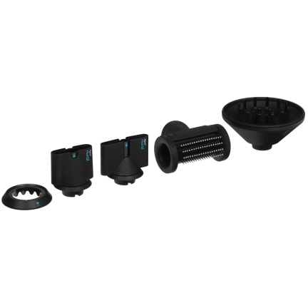 В комплект входят несколько насадок с магнитным креплением: концентратор для точной сушки, диффузор для объёма и насадка для бережной укладки. Лёгкая смена насадок делает фен универсальным как для домашнего применения, так и для работы в салоне.